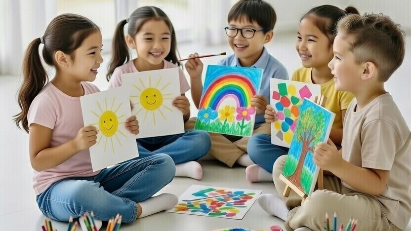 美術・創作活動を通じて、表現力・集中力・手指操作・自己肯定感を育てます。作品づくりの過程を大切にし、「考えて形にする力」を伸ばします。
